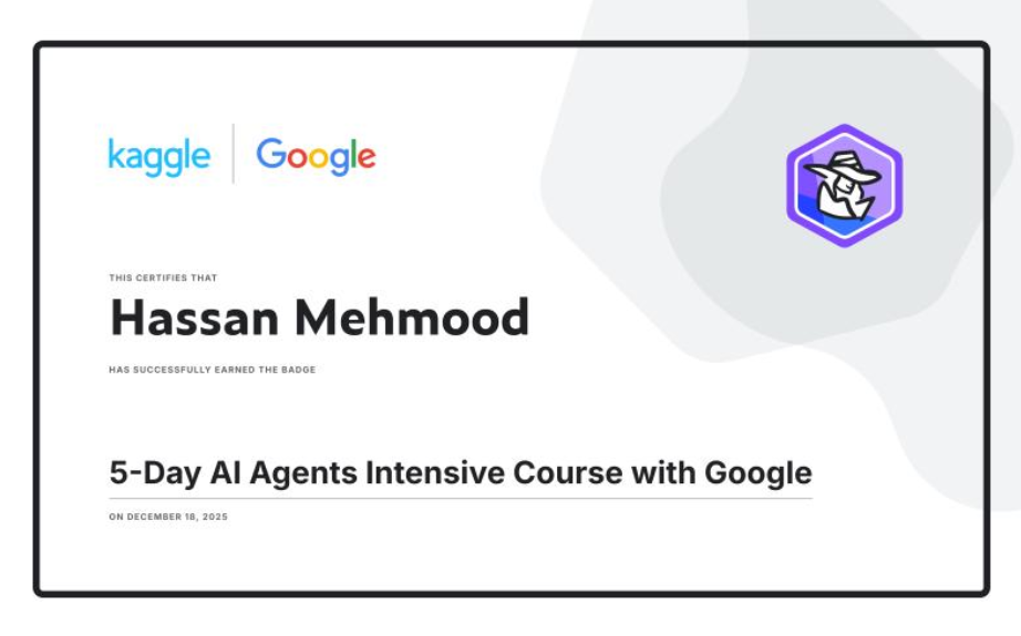 "I recently was lucky to work with Hassan for the LLaMA 3.2 Runners Hackathon during which we built an amazing app. Hassan's leadership was pivotal to the success of our project. He helped create a collaborative environment. Everyone was able to work together and perform at their best. Hassan demonstrated fluency in Python and a deep understanding of AI technologies. His skills aided in the efficiency and quality of our work. I would recommend him for any team!"